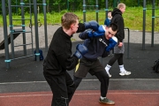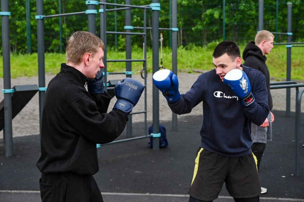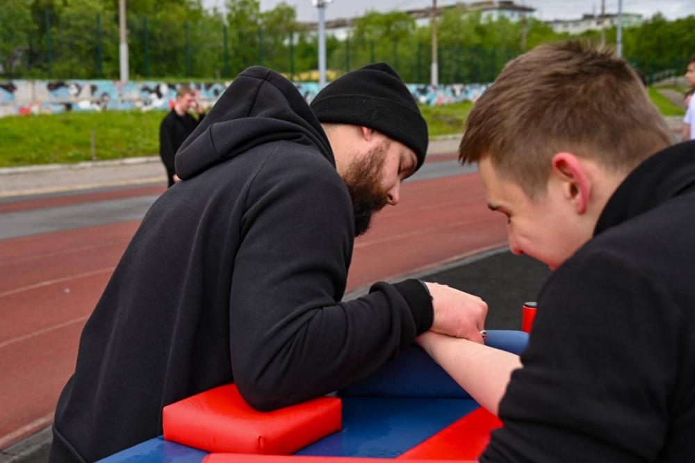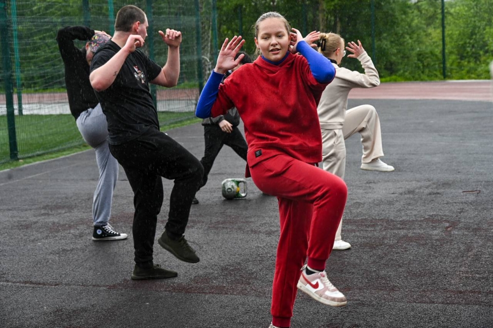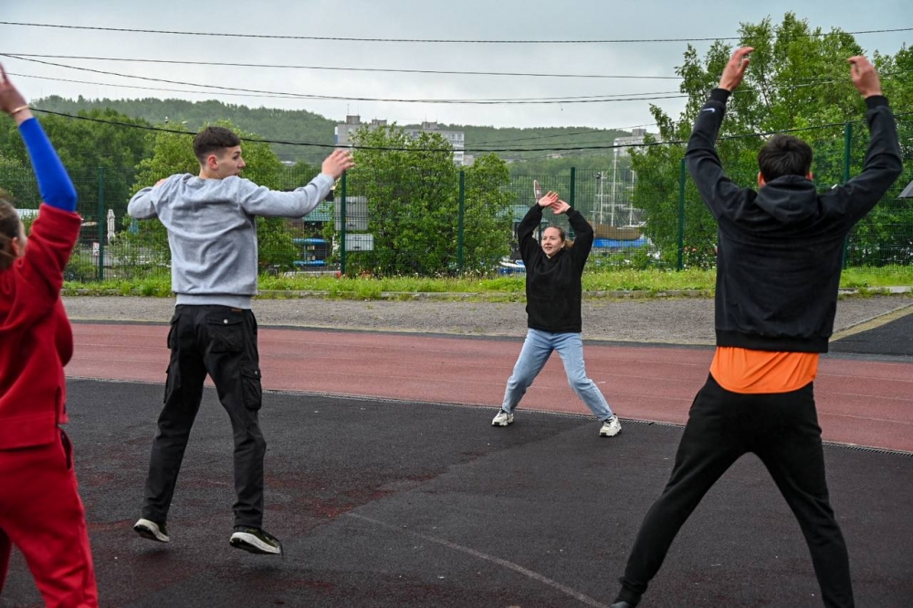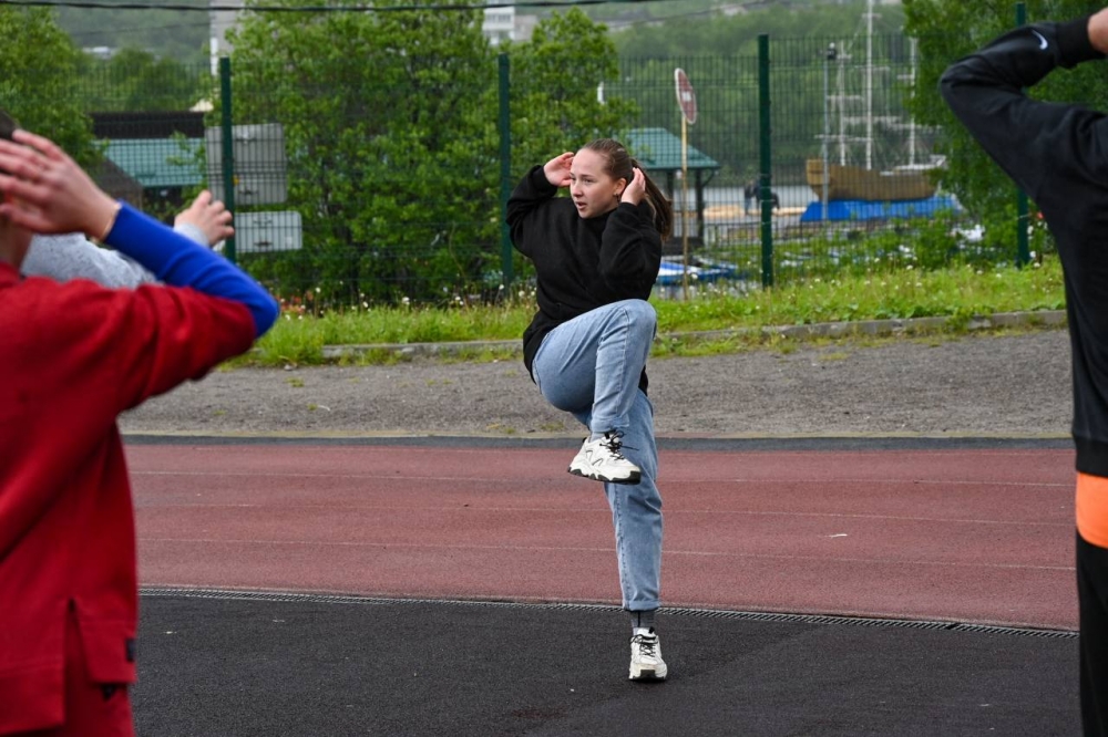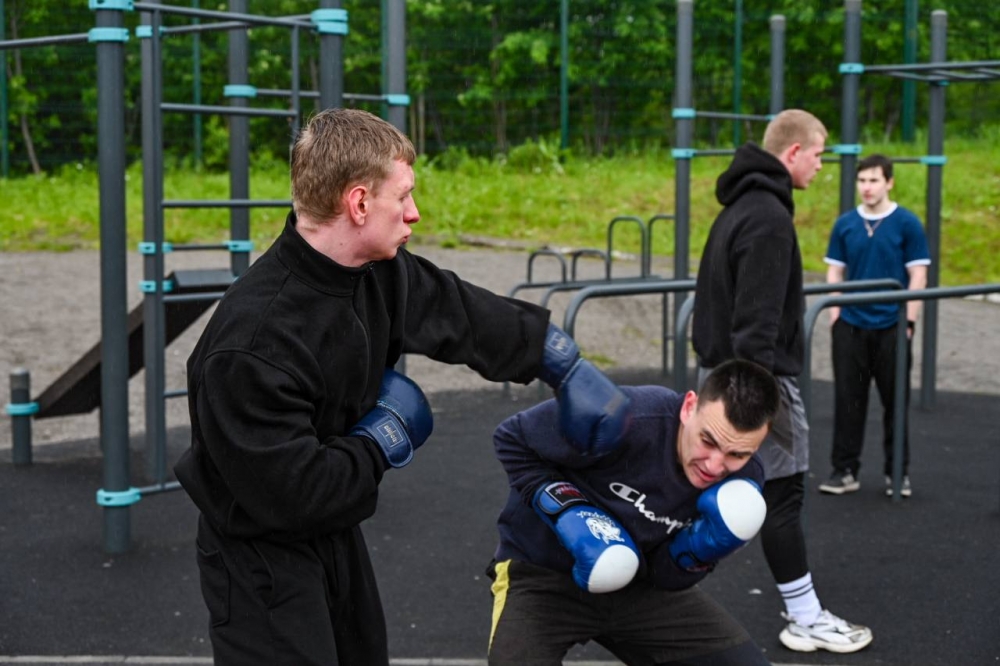 Несмотря на дождь, тренировка прошла в бодрой, позитивной атмосфере. Занятия для всех желающих включили в себя три блока. Первый — интенсивная круговая тренировка. Второй — мастер-класс по гиревому спорту с демонстрацией базовых элементов и возможностью попробовать себя в силовом жонглировании. И, наконец, тренировка по боксу с изучением основ техники под контролем трехкратного чемпиона Мурманской области Ивана Воробьева.
