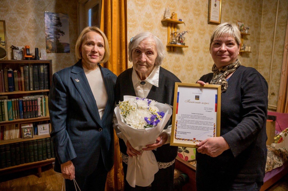 С внушительной датой долгожительницу поздравила заместитель главы города Мурманска Елена Ширшова. Она передала ветерану подарки от главы города Ивана Лебедева.