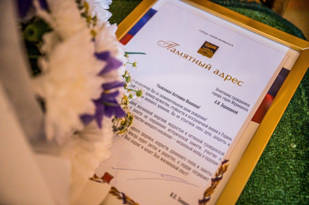 Звание почетного гражданина города-героя Мурманска было присвоено Антонине Ивановне Баранцевой 24 апреля текущего года.