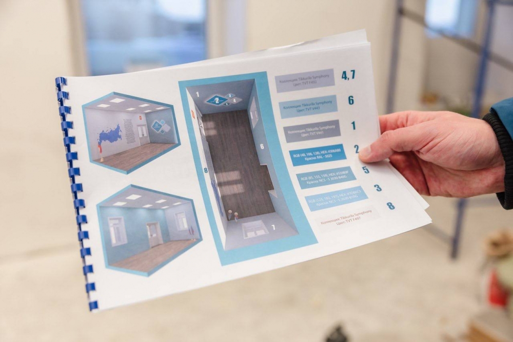 Проект ремонта включает в себя обновление всех внутренних помещений: замену напольного покрытия, монтаж нового подвесного потолка типа «Армстронг», окраску стен, а также модернизацию входной группы, включая замену плитки на крыльце на более безопасную. В целях повышения уровня безопасности запланировано расширение сети видеонаблюдения — установлены дополнительные камеры, что позволит увеличить зону покрытия.