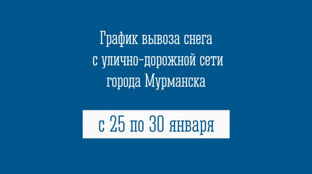 График вывоза снега с улично-дорожной сети города Мурманска с 25 по 31 января.