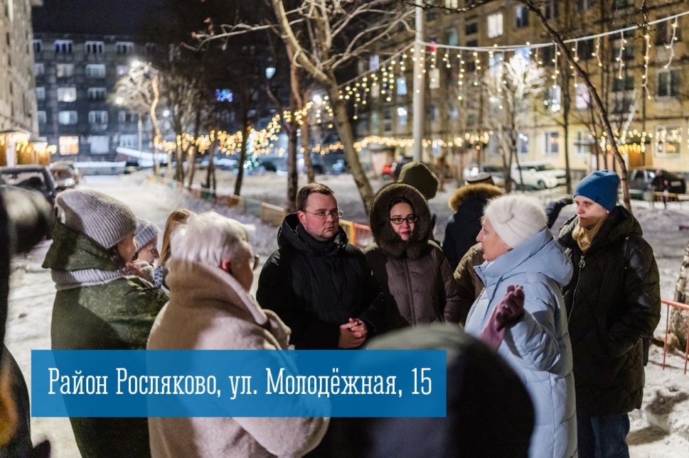 В Ленинском округе глава города Иван Лебедев, исполняющий обязанности начальника управления Вера Павлова и депутат Совета депутатов города Мурманска Ирина Матвеева 21 января провели встречу с жителями района Росляково около дома № 15 по улице Молодежной. Основные темы обсуждения касались состояния инфраструктуры и жилья в этом районе.