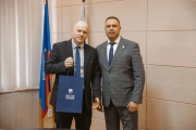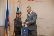 Заместитель главы города Мурманска Андрей Костин вручил финалистам заслуженные награды — бензиновые снегоуборщики.