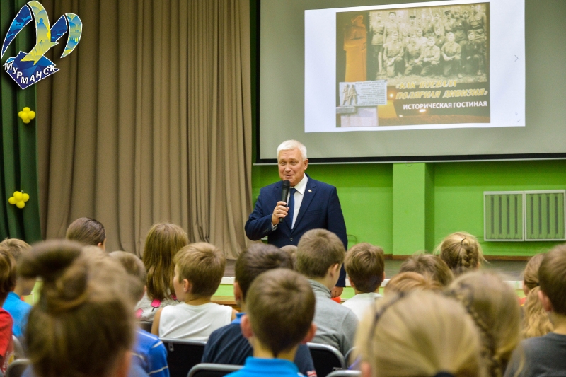 Сегодня в МБОУ г. Мурманска СОШ № 42 (ул. Героев Рыбачьего, 15) заместитель председателя Совета депутатов города Мурманска Михаил Белошеев вместе с коллегами — режиссером Андреем Сычевым и скульптором Александром Арсентьевым провели для воспитанников летнего оздоровительного лагеря историческую гостиную, посвященную подвигу воинов Полярной дивизии.