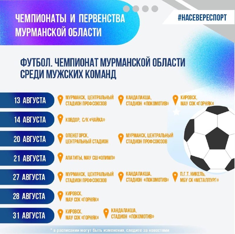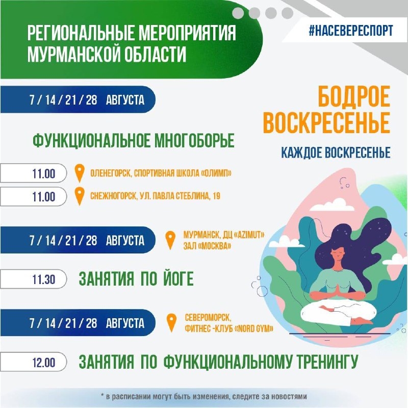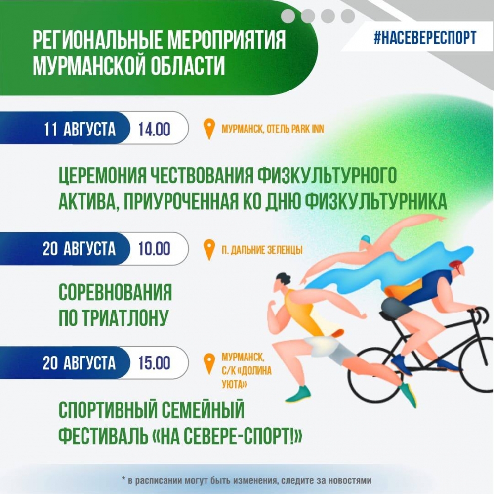 Подробное расписание всех спортивных мероприятий августа доступно на сайте Министерства спорта Мурманской области.
