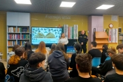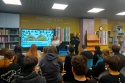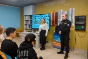 Сегодня в библиотеке школы № 41 (просп. Героев-Североморцев, 76, корп. 3) прошел «Урок мужества». Приглашенным гостем стал участник СВО, кавалер ордена Мужества, лейтенант Евгений Новиков.