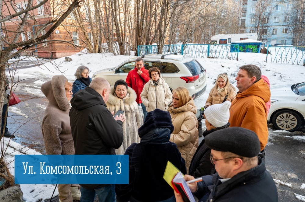 Начальник управления Октябрьского административного округа Елена Ширшова и депутат Совета депутатов города Мурманска Елена Меркушова провели встречу с жильцами дома № 3 по ул. Комсомольская. В ходе диалога подняты вопросы необходимости ремонта подъездов и цоколя здания, восстановления фасадного освещения в районе подъезда № 2. Также северяне попросили благоустроить детскую площадку и придомовую территорию, отремонтировать дорогу, бордюры и забор во дворе дома. Они обратили внимание на необходимость проверки качества капитального ремонта инженерных систем, проведённого в доме в 2023 году.