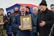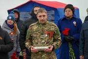 Икону митрополит Мурманский и Мончегорский Митрофан передал Герою России, участнику контртеррористических операций на Северном Кавказе полковнику Вячеславу Сивко. Капсулу с землей Герой России, депутат Московской городской думы Аркадий Корольков получил из рук председателя местной общественной организации «Союз ветеранов СВО и участников боевых действий ЗАТО Александровск» Константина Карпова.