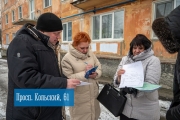 В Ленинском административном округе заместитель начальника управления Вера Павлова и депутат Совета депутатов города Мурманска Ирина Матвеева встретились с жильцами дома № 6 по улице Мохнаткина Пахта в районе Росляково. Мурманчане пожаловались на удаленность домов от остановки общественного транспорта. Северяне предложили рассмотреть возможность изменения маршрута автобуса № 33-р или организовать новый маршрут для более удобного транспортного сообщения.
