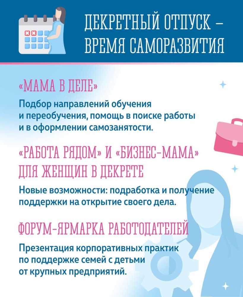 Основное внимание в проекте уделено психологической и медицинской помощи молодым северянам, планирующим стать или уже ставшим родителями. Женщинам предоставляется помощь в поиске дополнительной занятости, включая консультации, поиск подработки, оформление самозанятости и получение единовременной финансовой помощи.