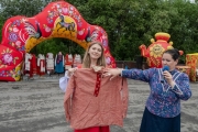 Мурманчане пританцовывали под зажигательное выступление ансамбля казачьей песни «Северная станица», с удовольствием участвовали в молодецких играх и забавах, наряжались в этнические костюмы, чтобы сделать фото на память в тематической фотозоне. Рядом расположились ярмарка декоративно-прикладного творчества и зона с настольными играми. А благодаря выставке русского народного женского костюма от музея «Рябиновый край» гости познакомились со свадебными и праздничными нарядами орловской, архангельской, калужской и других областей и узнали о традиционных элементах одежды и украшений, которыми красовались девушки на Руси.