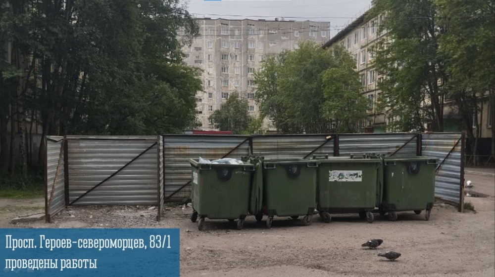 Все обращения находятся на контроле или решаются оперативно. На этой неделе в доме № 29 по ул. Шмидта управляющая компания привела в порядок подъезд и разработала новый график уборки. После жалобы жильцов дома № 24 по проспекту Героев-североморцев был осуществлён покос зелёной зоны, отремонтировано ограждение контейнерной площадки около дома № 83/1 по проспекту Героев-североморцев.