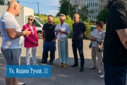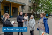 В Ленинском округе встречу с мурманчанами около дома № 32 по улице Алексея Хлобыстова провёл начальник отдела по взаимодействию с жилищно-коммунальными структурами и благоустройству управления округа Глеб Анацкий.