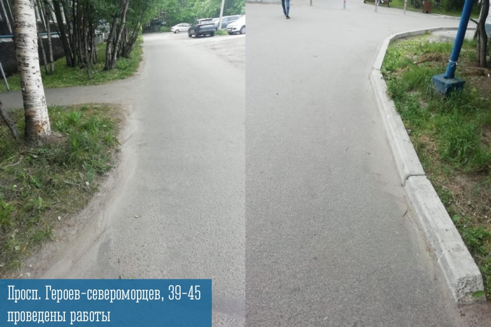 На этой неделе была приведена в порядок контейнерная площадка около дома № 43 по проспекту Героев-североморцев, а также убран мусор с территории домов №№ 39–45 по проспекту Героев-североморцев.