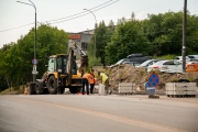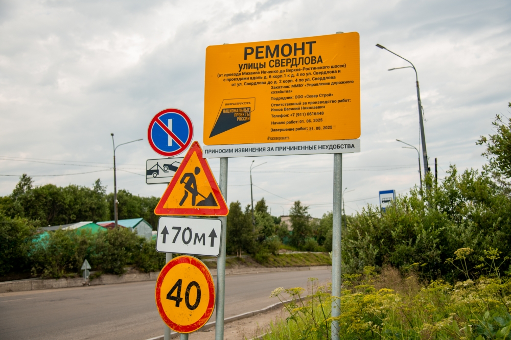 На улице Свердлова, от проезда Михаила Ивченко до Верхне-Ростинского шоссе, плановый ремонт идет также в рамках нацпроекта. Этап фрезерования полотна проезжей части уже завершен, рабочие заканчивают работы по установке бортового камня, разборке тротуаров, укладке выравнивающего слоя покрытия проезжей части.