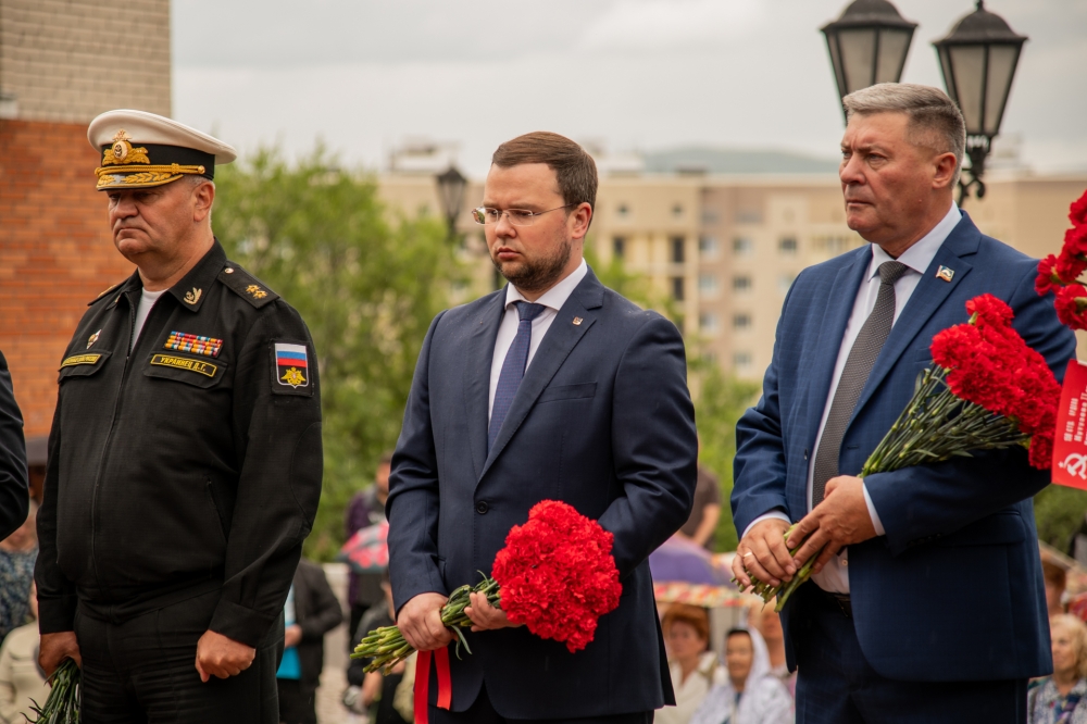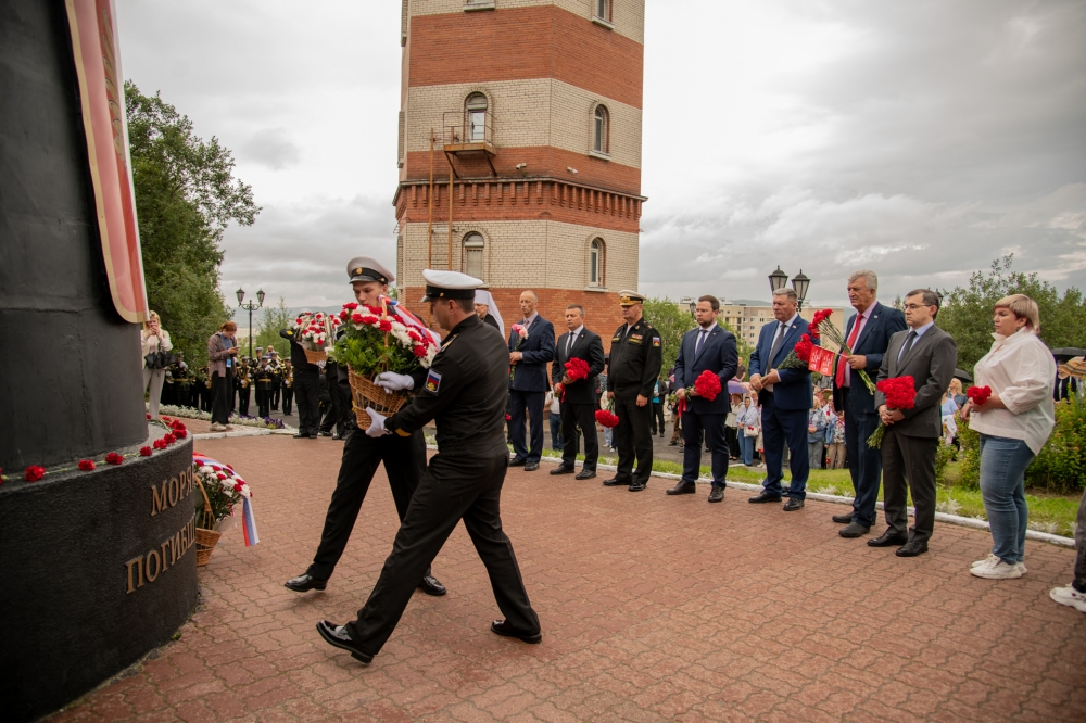 В Мурманске на площадке мемориального комплекса морякам, погибшим в мирное время, прошел митинг, посвященный памяти экипажа АПЛ «Курск». В траурных мероприятиях приняли участие заместитель командующего Северным флотом вице-адмирал Дмитрий Украинец, заместитель губернатора — министр региональной безопасности Мурманской области Артем Долгов, первый заместитель председателя Мурманской областной Думы Владимир Мищенко, митрополит Мурманский и Мончегорский Митрофан, временно исполняющий полномочия главы города Мурманска Иван Лебедев, жители и гости столицы Кольского Заполярья.