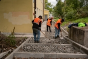 На участке от проезда Михаила Ивченко до Верхне-Ростинского шоссе, включая подъезды к домам №№ 4 и 2/4 интенсивно ведутся работы: подрядчик завершает устройство бортового камня, поднимает до уровня дорожного покрытия колодцы, трудится над щебеночным основанием тротуаров.