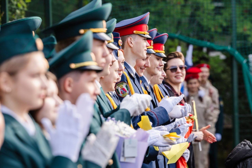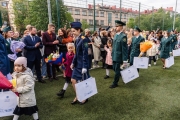 Хорошая погода позволила провести линейку под открытым небом, на школьном стадионе. Начался праздник с выноса флага Российской Федерации и знамен кадетских классов. Затем перед лицеистами и их родителями со словами поздравления и напутствия выступили гости и педагоги.