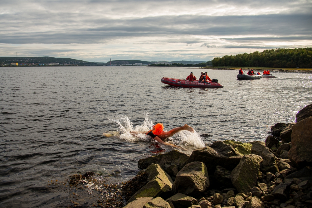 Заплыв на дистанцию 1200 метров через Кольский залив является одним из самых экстремальных и зрелищных соревнований ежегодного спортивного праздника. Главный приз состязаний составляет 100 тысяч рублей. На участие заявился уже 31 спортсмен из 7 городов России – Москвы, Санкт-Петербурга, Тюмени и других.