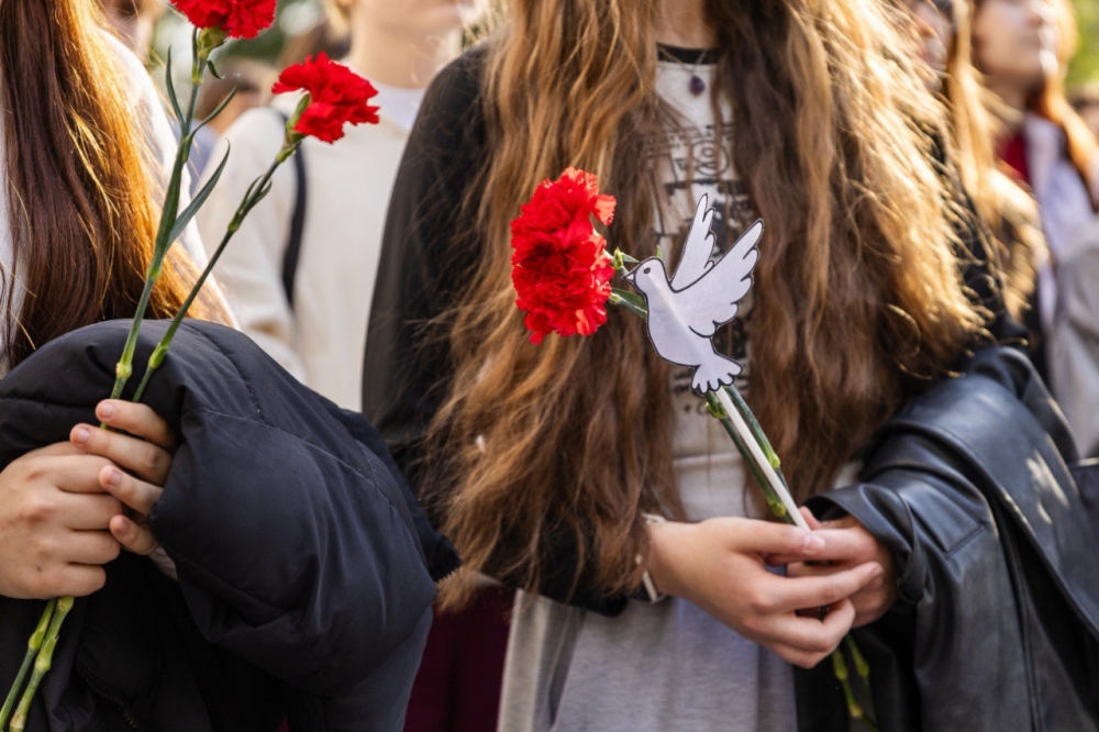 Участники митинга почтили память погибших от рук террористов мирных граждан и сотрудников силовых структур минутой молчания, возложили цветы к инсталляции, посвященной бесланской трагедии.