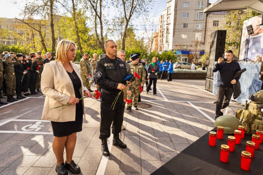 Перед собравшимися выступили начальник отдела по делам молодежи и взаимодействию с общественными организациями администрации города Мурманска Александра Богдева, член координационного совета Ассоциации ветеранов СВО Мурманской области Олег Конышев, эксперт военного комиссариата города Мурманска, член ассоциации ветеранов СВО Алексей Забегаев, руководитель учебного комитета Мурманской епархии иерей Анатолий.