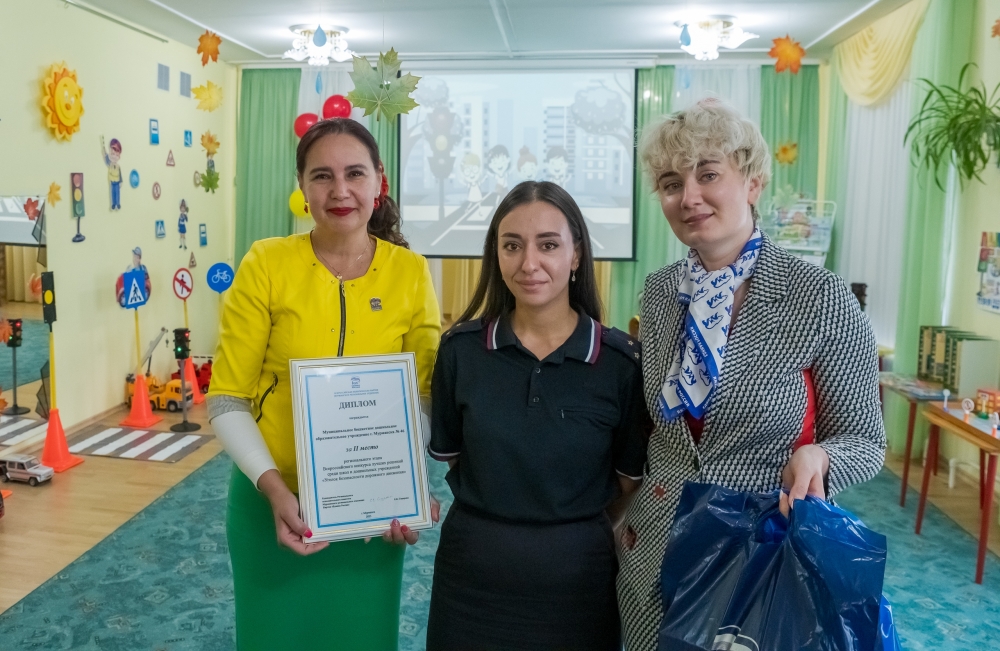 Дети отправились в увлекательное путешествие в страну Светофорию, где вместе со сказочными персонажами закрепляли свои знания по безопасному поведению на дороге. Юные мурманчане уверенно декламировали правила дорожного движения и активно участвовали в увлекательных музыкально-спортивных играх. Итогом мероприятия стало вручение диплома педагогическому составу деского сада за II место регионального этапа Всероссийского конкурса лучших решений среди школ и дошкольных учреждений «Уголок безопасности дорожного движения».