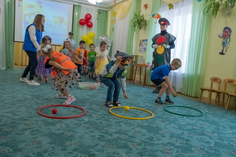 Сегодня в детском саду № 46 (район Росляково, шоссе Североморское, 20) в рамках акции «Внимание! Дети!» прошёл праздник, посвященный безопасности на дорогах.