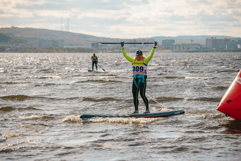 Гости и участники также увидели заплыв на сапбордах. В этом соревновании победители распределились следующим образом: