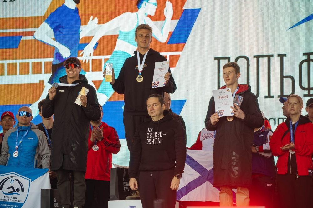В заплыве через залив сильнейшими стали спортсмены из Владивостока Николай Морозов (14 минут 26 секунд) и Вероника Кузнецова (15 минут 18 секунд) Вторые места завоевали мурманчанин Владислав Сапожников (14 минут 57 секунд) и жительница Владивостока Маргарита Карпачева (15 минут 57 секунд). Бронзовые медали заплыва достались мурманчанам Александру Глазунову и Екатерине Крутовой (16 минут 7 секунд).