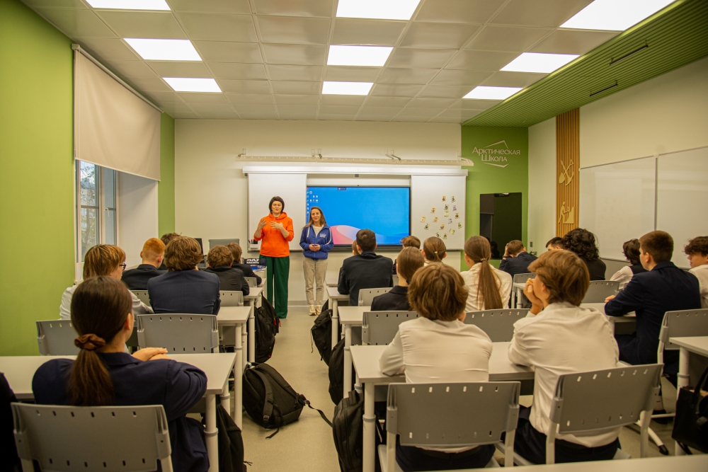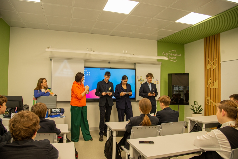 Обновленные в рамках губернаторской программы «Арктическая школа» пространства образовательных учреждений города Мурманска нравятся и ученикам, и педагогам. Заниматься в них — одно удовольствие, отмечают ребята. Сегодня в одном из кабинетов математики гимназии № 2 (просп. Ленина, 59), проект обновления которого стал победителем конкурса грантов в номинации «Горняк будущего», представители компании «ФосАгро» и Мурманского арктического университета провели игру для старшеклассников.