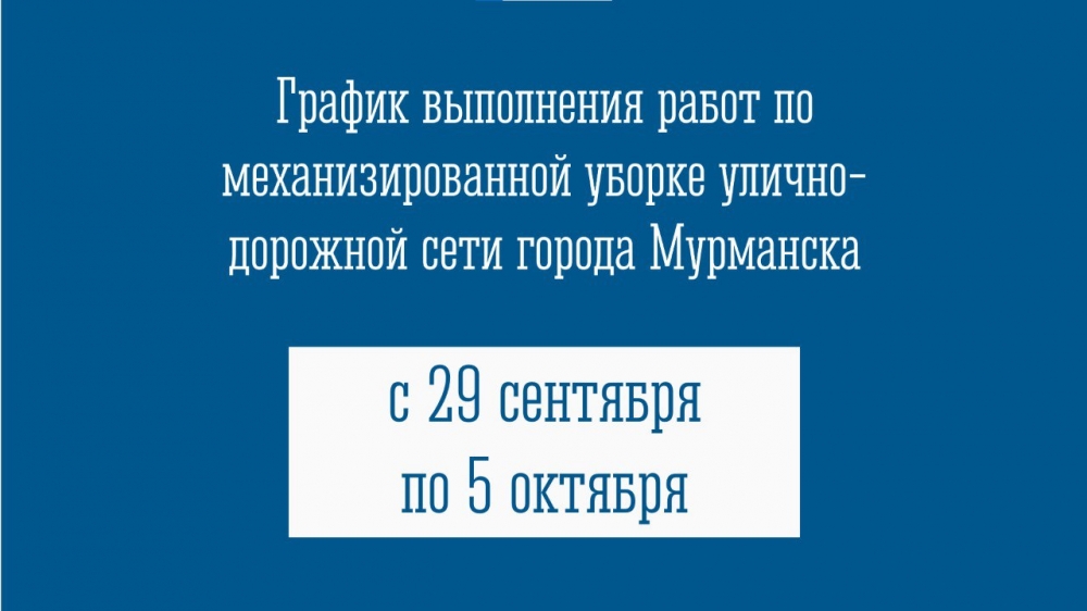 График выполнения работ по механизированной уборке улично-дорожной сети города Мурманска с 29 сентября по 5 ноября: