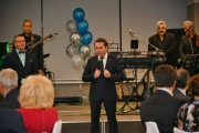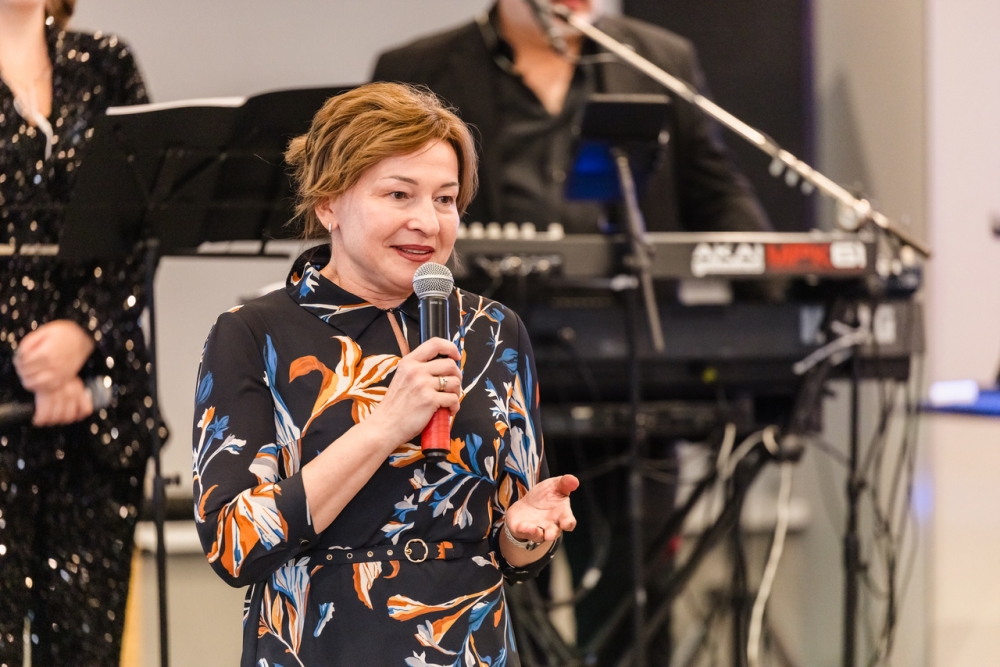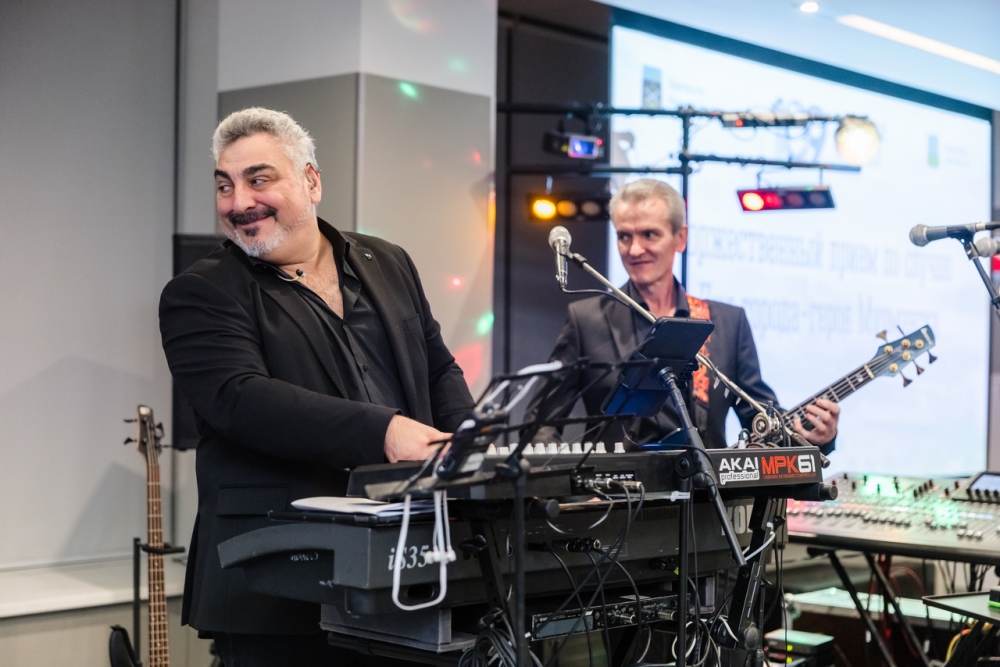 У самого входа в зал царила праздничная атмосфера: своей игрой гостей встречал саксофонист Эдуард Ханов, а мурманские волонтёры провожали северян к столам. По случаю наступающего Дня города Мурманска почетным гостям были вручены цветы и подарки.