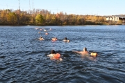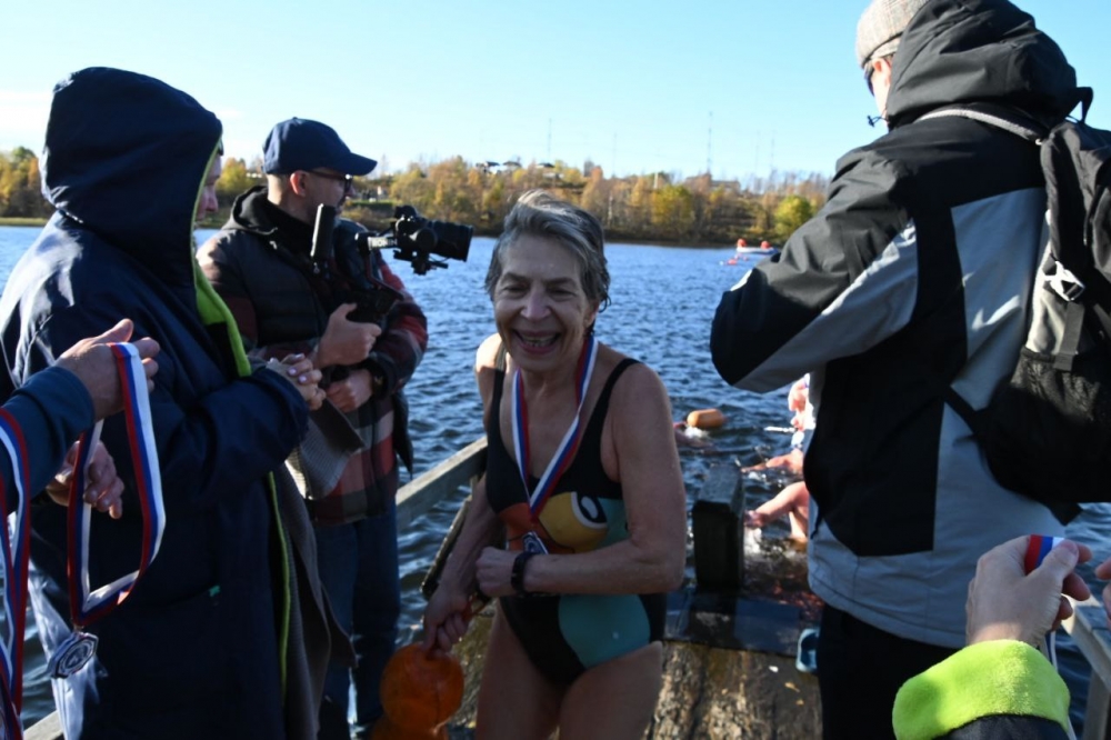 Заключительным спортивным событием стал заплыв в Семеновском озере. Настоящее испытание холодом на дистанции 109 метров преодолели 37 участников.