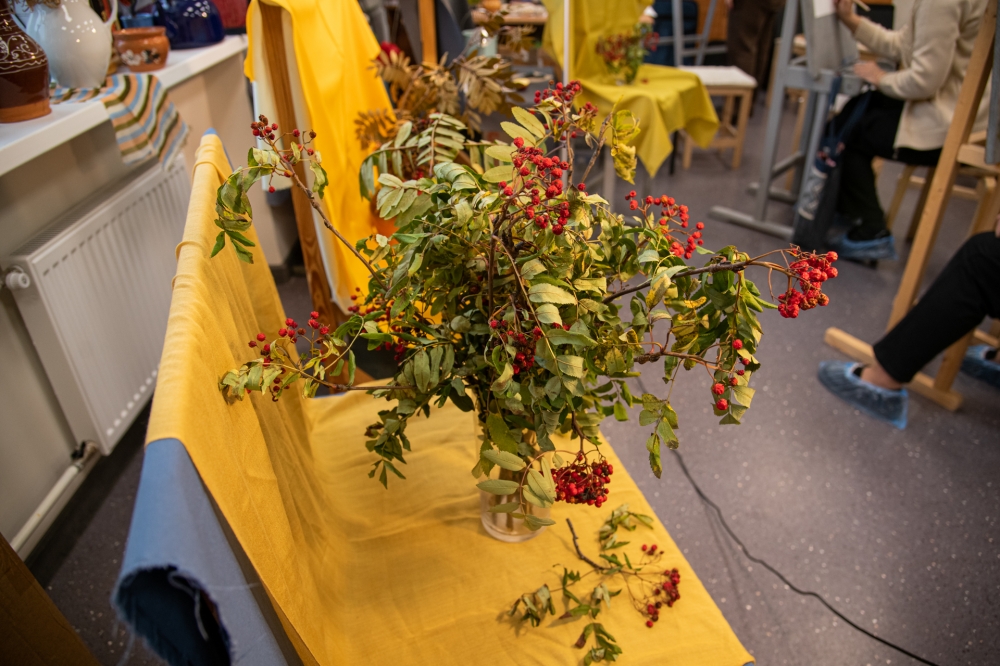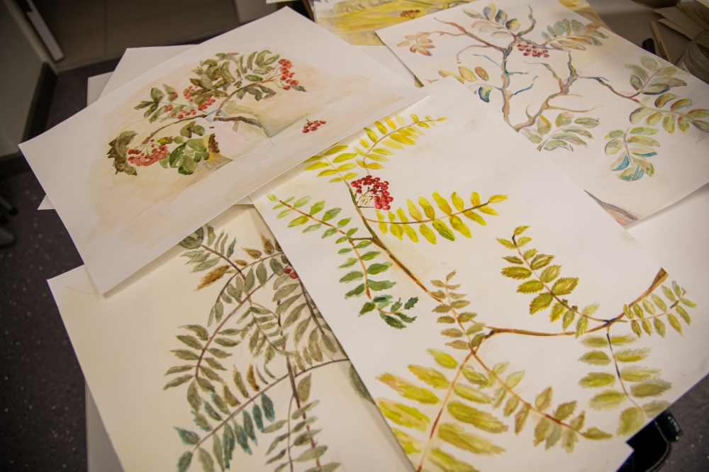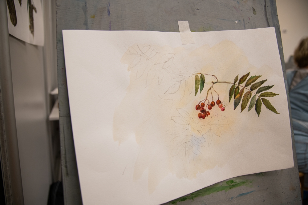 В практической части мастер-класса каждый смог попробовать свои силы в создании этюдов на осеннюю тематику, используя характерные элементы осени: рябиновые грозди и богатую палитру оттенков листвы.