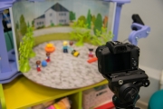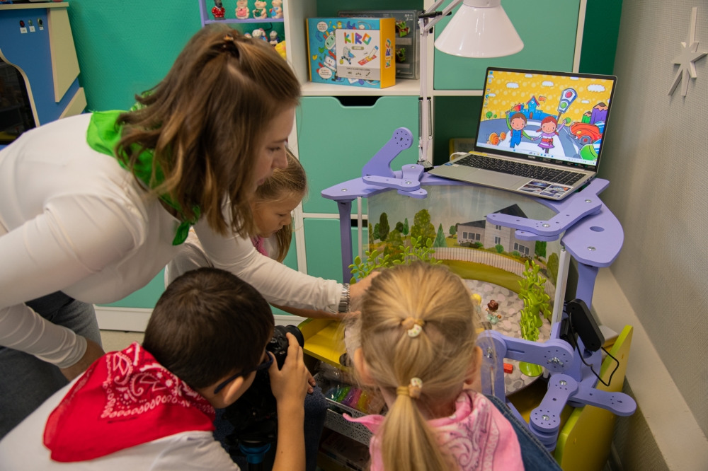 Воспитанники детского сада приняли участие в творческом процессе, направленном на формирование у дошкольников навыков безопасного поведения на дороге. Занятие проходило в специально оборудованной мультстудии. Ребята разыгрывали сцену, происходящую на улице, фиксировали каждое движение фотоаппаратурой и записывали звуковое сопровождение.