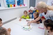 Образовательное пространство «Уникум. Малыш» в корпусе детского сада № 50 (ул. Новое Плато, 17) — это современная площадка для занятий с дошколятами экспериментальной деятельностью и конструированием в сочетании с коррекционной работой. Пространство открылось в этом году в рамках губернаторской программы «Арктическая школа». Сегодня для юных мурманчан здесь прошло увлекательное тематическое занятие «Умка хочет учиться».