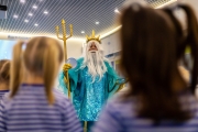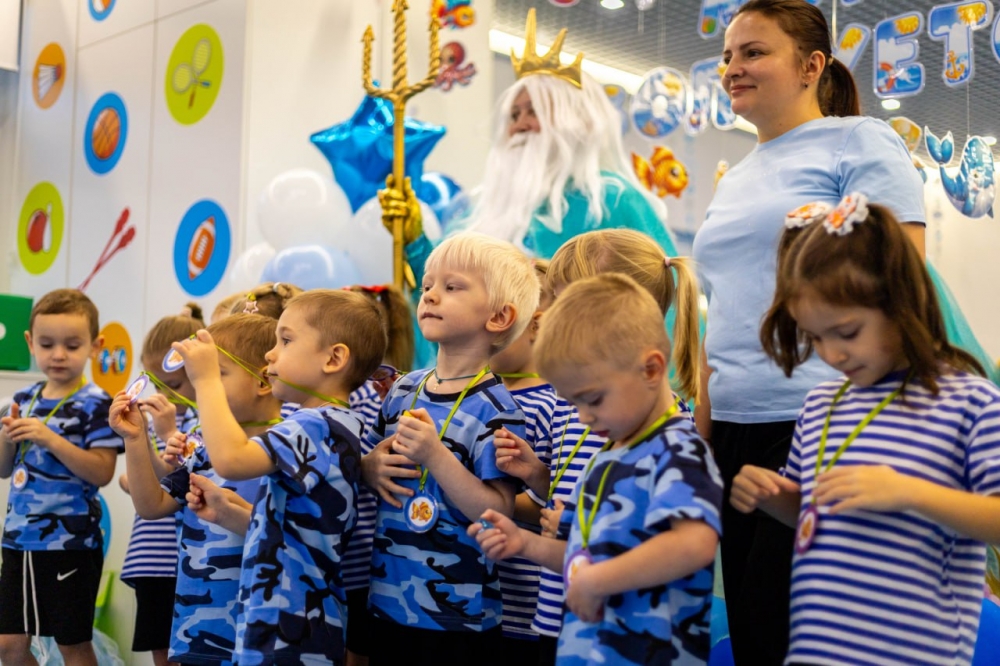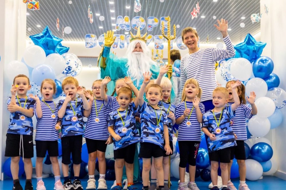 Маленькие путешественники отправились в волшебное подводное приключение, полное спортивных игр и эстафет, и встретились с царем Нептуном.