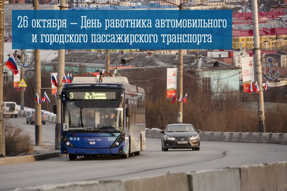 Ваш труд — не просто работа, но важнейшая составляющая жизни Мурманска, его развития и благополучия. В любую погоду и время года вы обеспечиваете бесперебойное движение транспорта, доставляете грузы, перевозите пассажиров, связываете воедино округа и районы города.