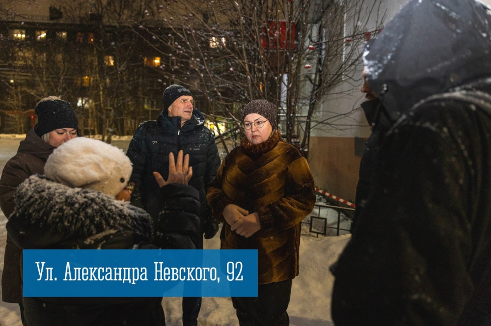 В Ленинском округе исполняющая обязанности начальника управления Вера Павлова и депутат Совета депутатов города Мурманска Сергей Коробков провели встречу с горожанами около дома № 92 по улице Александра Невского. Жители выразили обеспокоенность плохим состоянием придомовой территории домов №№ 88, 92, 94 и 96, а также скоплением крупногабаритных отходов и состоянием контейнера для сбора пластика.