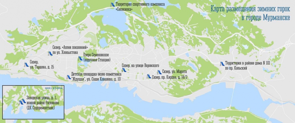 Ежегодно во всех округах Мурманска проводится комплекс работ по установке зимних игровых сооружений, эти мероприятия выполняются МАУК «Мурманские городские парки и скверы».