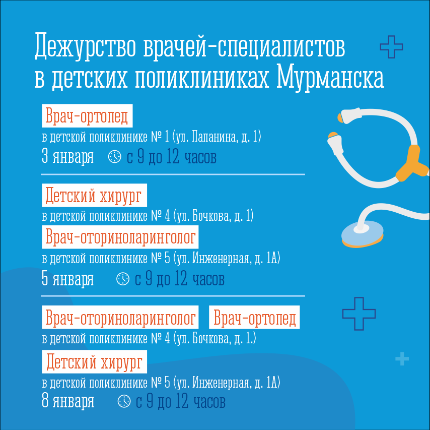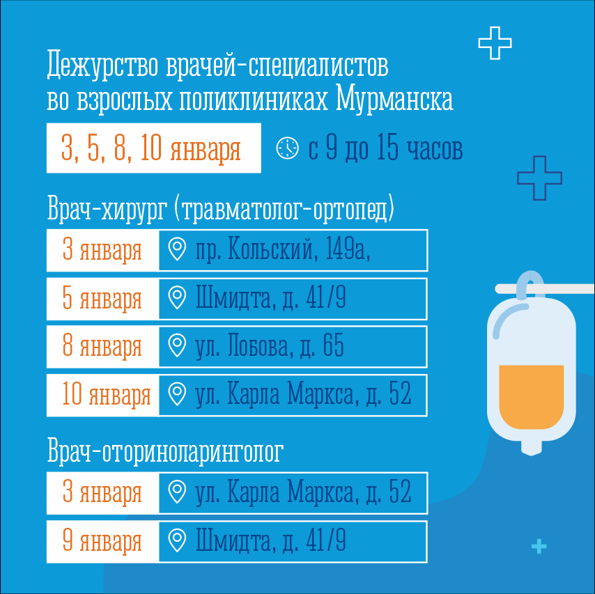 График работы медицинских учреждений в городе-герое Мурманске в период новогодних каникул.