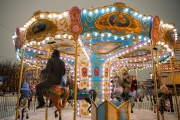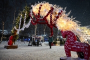 У главной новогодней ёлки уже работает зимний городок: детей и взрослых ждет карусель и ледяной терем Деда Мороза, в котором можно сфотографироваться на ледяном троне. Сказочный персонаж лично будет встречать гостей сегодня до 20:00 и с 1 по 4 января с 12:00 до 18:00 часов.