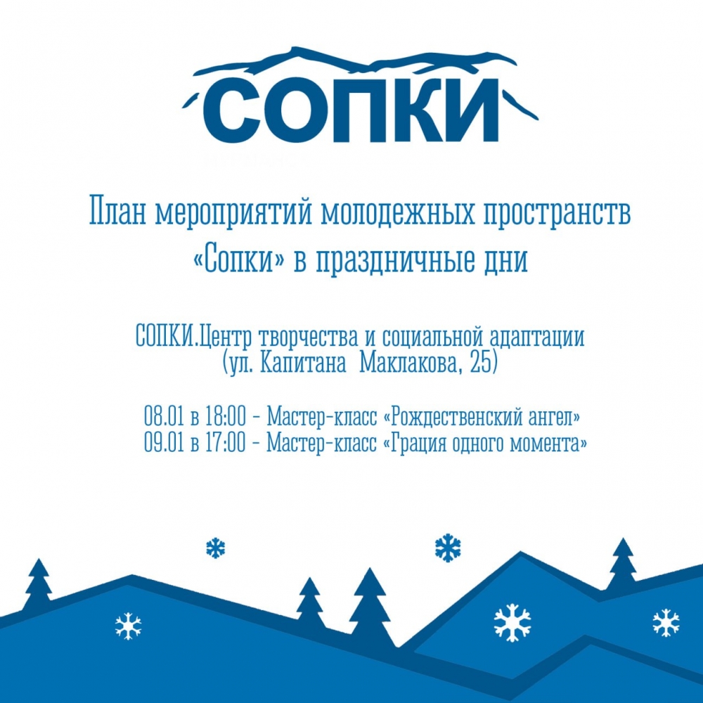 Для молодежи Мурманска на новогодних каникулах в пространствах «СОПКИ» подготовлена программа активностей, благодаря которой каждый сможет отлично отдохнуть и зарядиться положительными эмоциями.