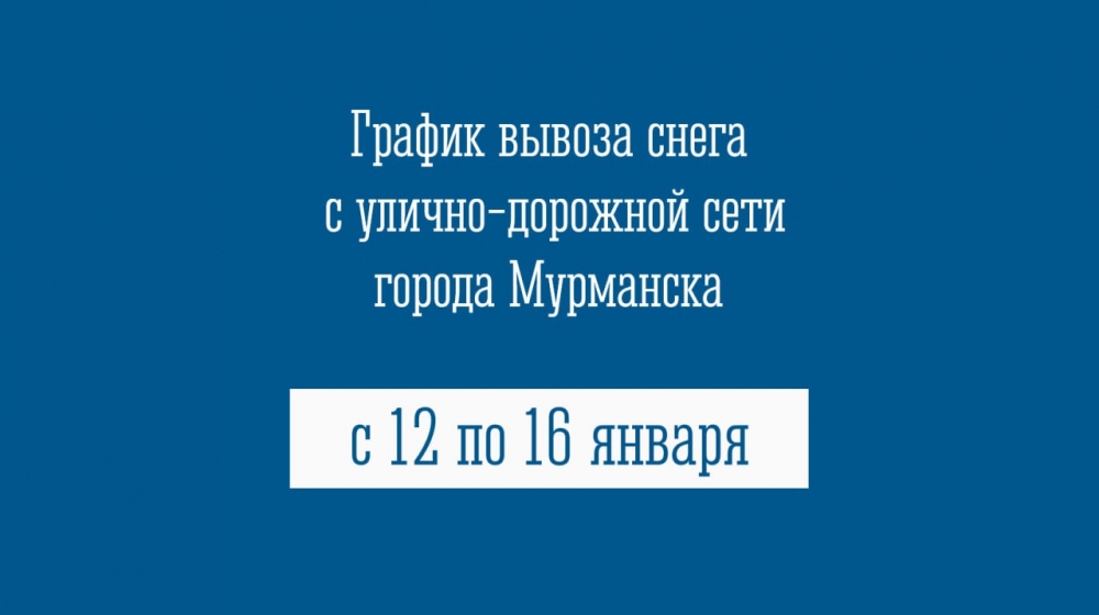 График вывоза снега с улично-дорожной сети города Мурманска с 12 по 16 января