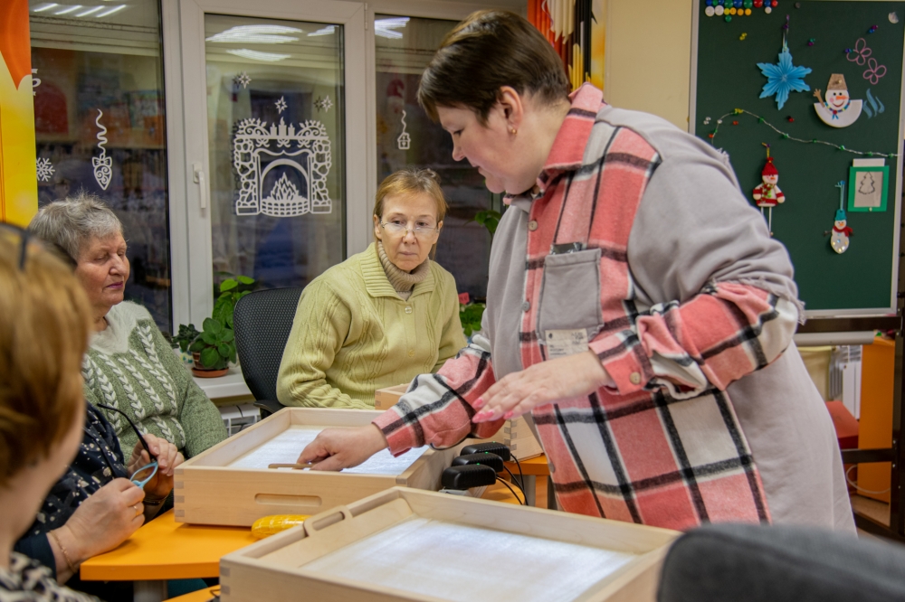 В Детской библиотеке № 2 (ул. Адмирала флота Лобова, 46) прошёл мастер-класс по рисованию песком на световых столах «Снегирь и снеговик», организованный для представителей старшего поколения в рамках губернаторского проекта «Северное долголетие».