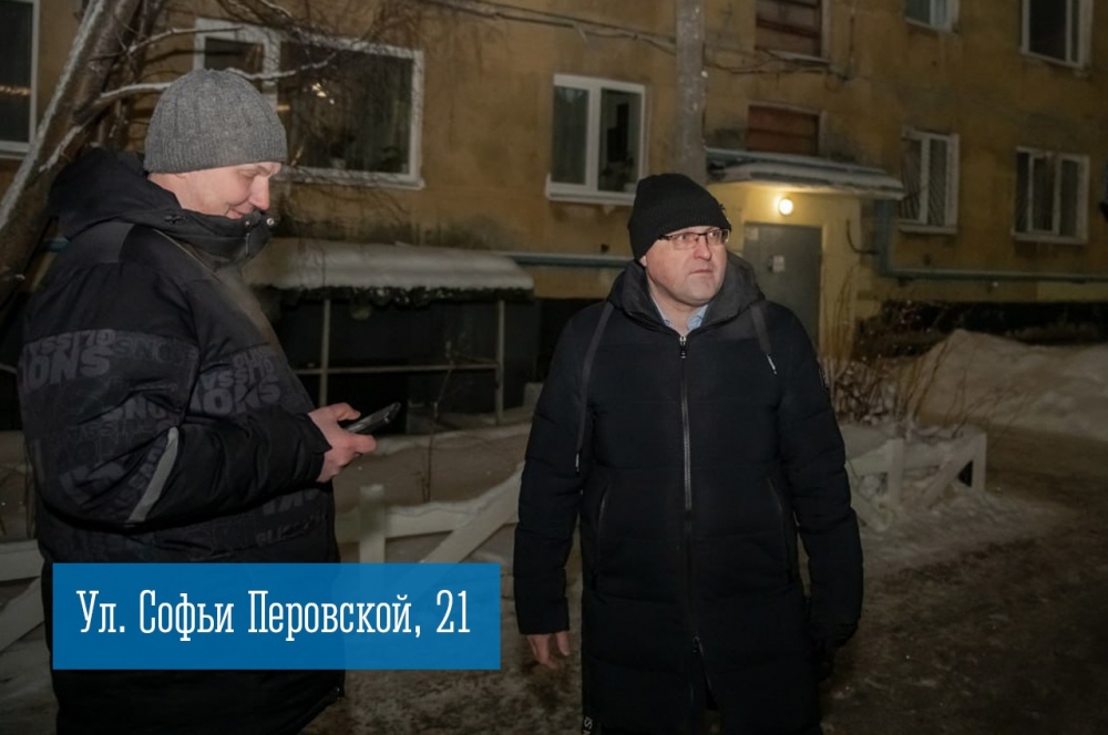 В Октябрьском округе исполняющий обязанности начальника управления Павел Воронин обсудил с жителями дома № 21 по ул. Софьи Перовской вопросы, касающиеся складирования снега во дворе и несанкционированных надписей на фасаде.