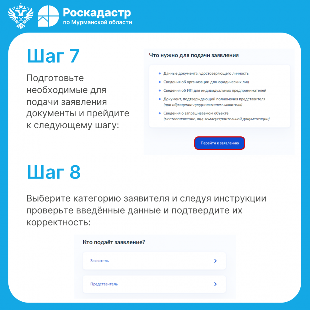 Дополнительную информацию о порядке предоставления услуги можно уточнить у специалистов филиала компании по телефонам: 8 (8152) 40-30-00, 8 (8152) 40-30-17, доб. 2507, 2508, и по электронной почте: filial@51.kadastr.ru.
