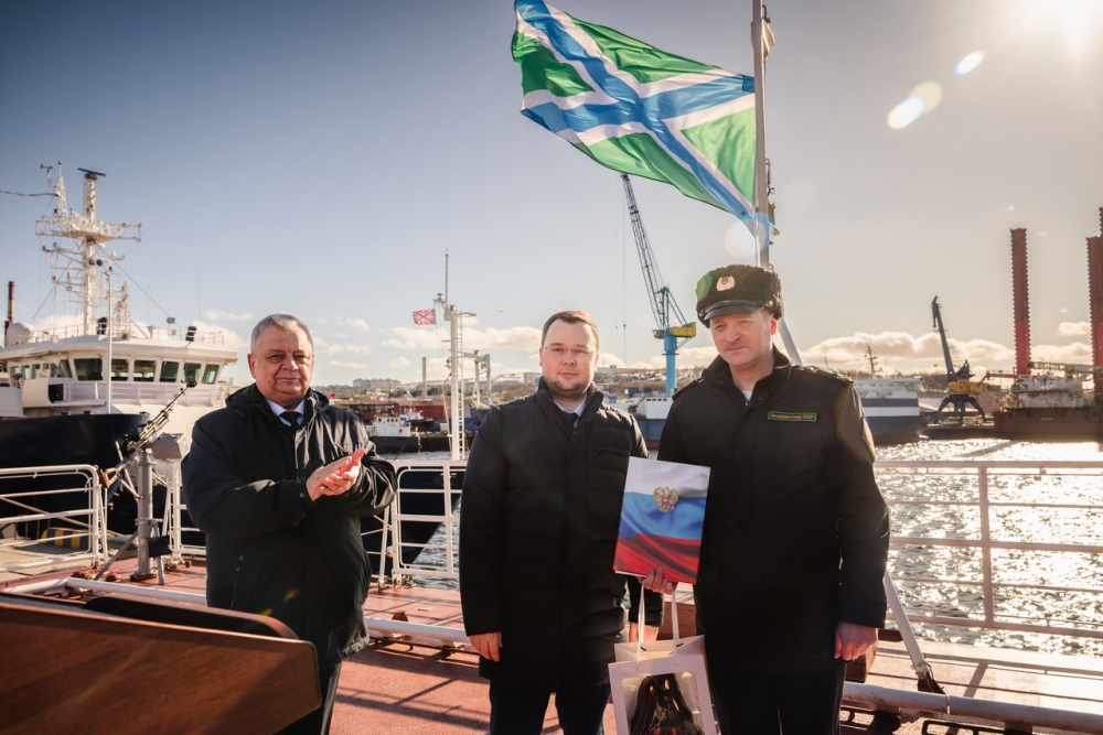 Вместе с ребятами гостем экипажа стал глава города Мурманска Иван Лебедев. В торжественной обстановке перед строем глава города и начальник отряда пограничных сторожевых кораблей Пограничного Управления ФСБ России по западному арктическому району капитан I ранга Андрей Меновщиков обменялись экземплярами подписанного ранее трехстороннего соглашения о сотрудничестве между отрядом ПСКР, администрацией города Мурманска и Советом депутатов города Мурманска.