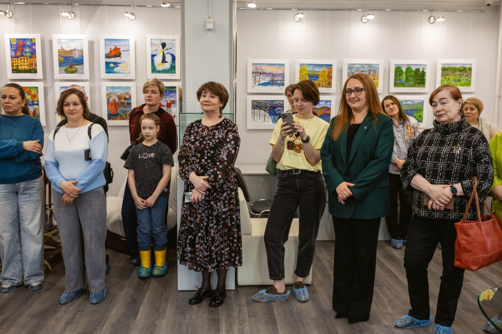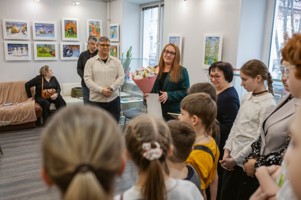 Гости выставки смогли не только полюбоваться работами юных дарований, полными фантазии и искренности, но и познакомиться с их авторами. Поддержать ребят пришла и депутат Совета депутатов города Мурманска, директор Первомайского Дома детского творчества Алена Веко. Особое впечатление на гостей произвело выступление бессменного руководителя студии — педагога с 30‑летним стажем и члена Мурманского отделения Союза художников РФ Надежды Маркиной.