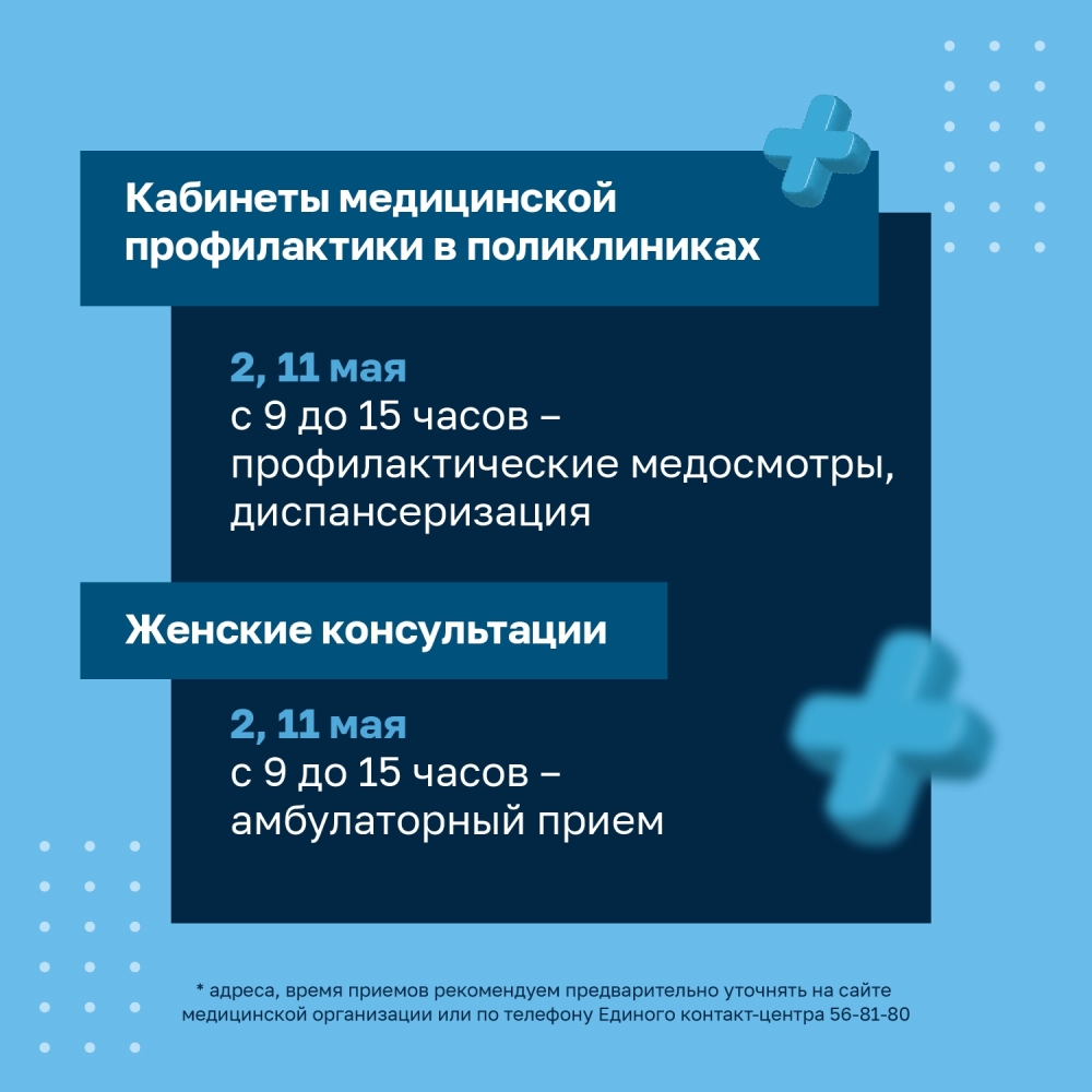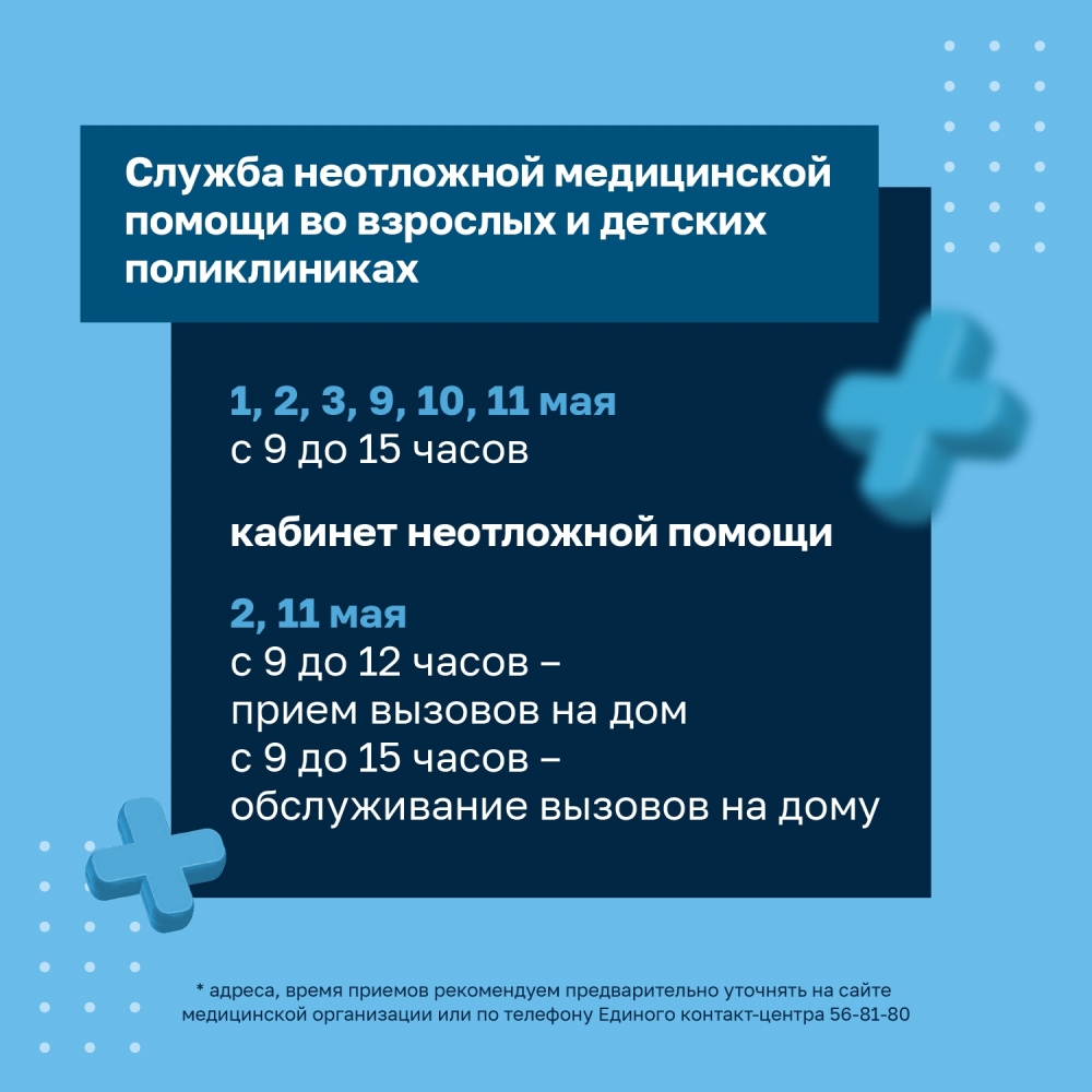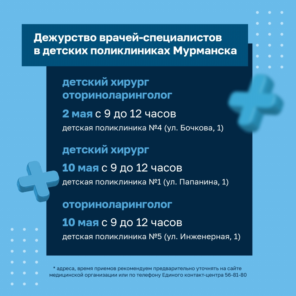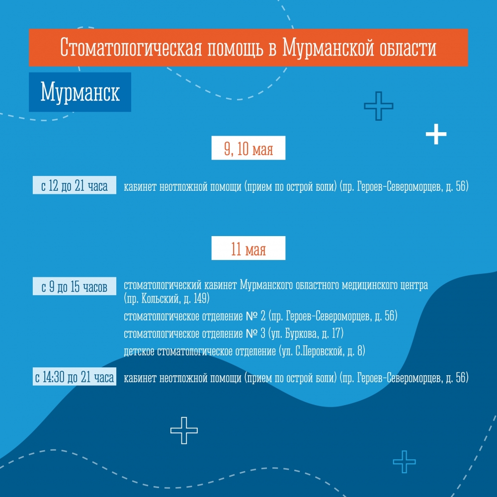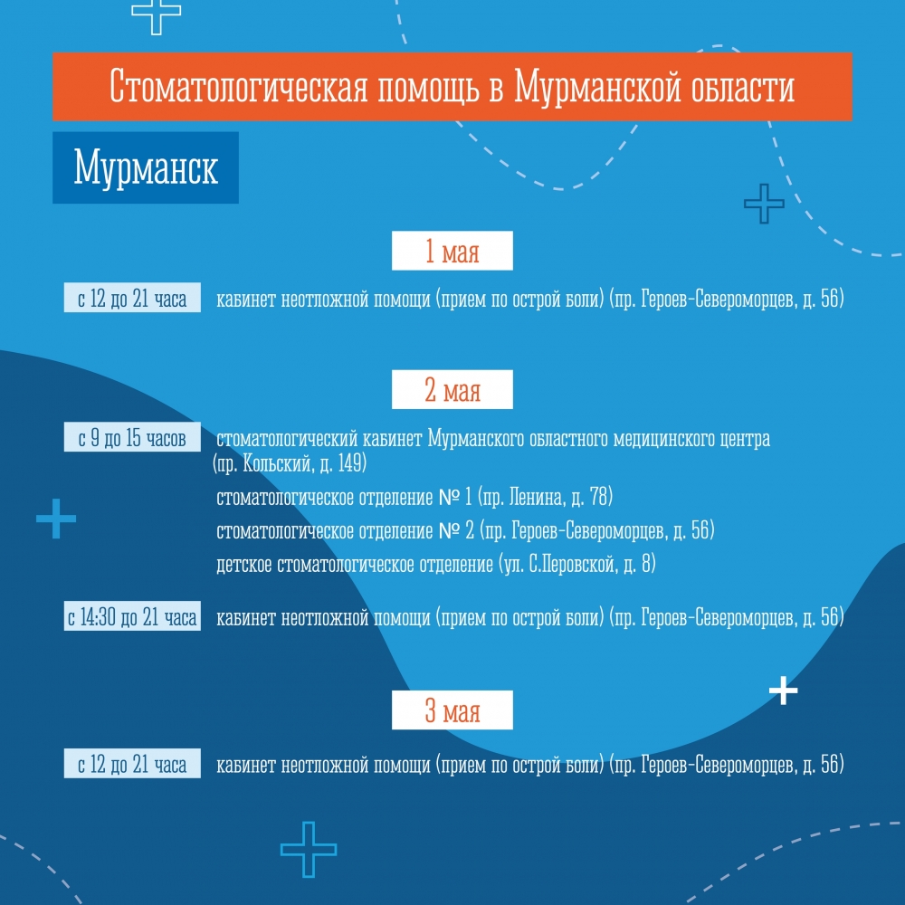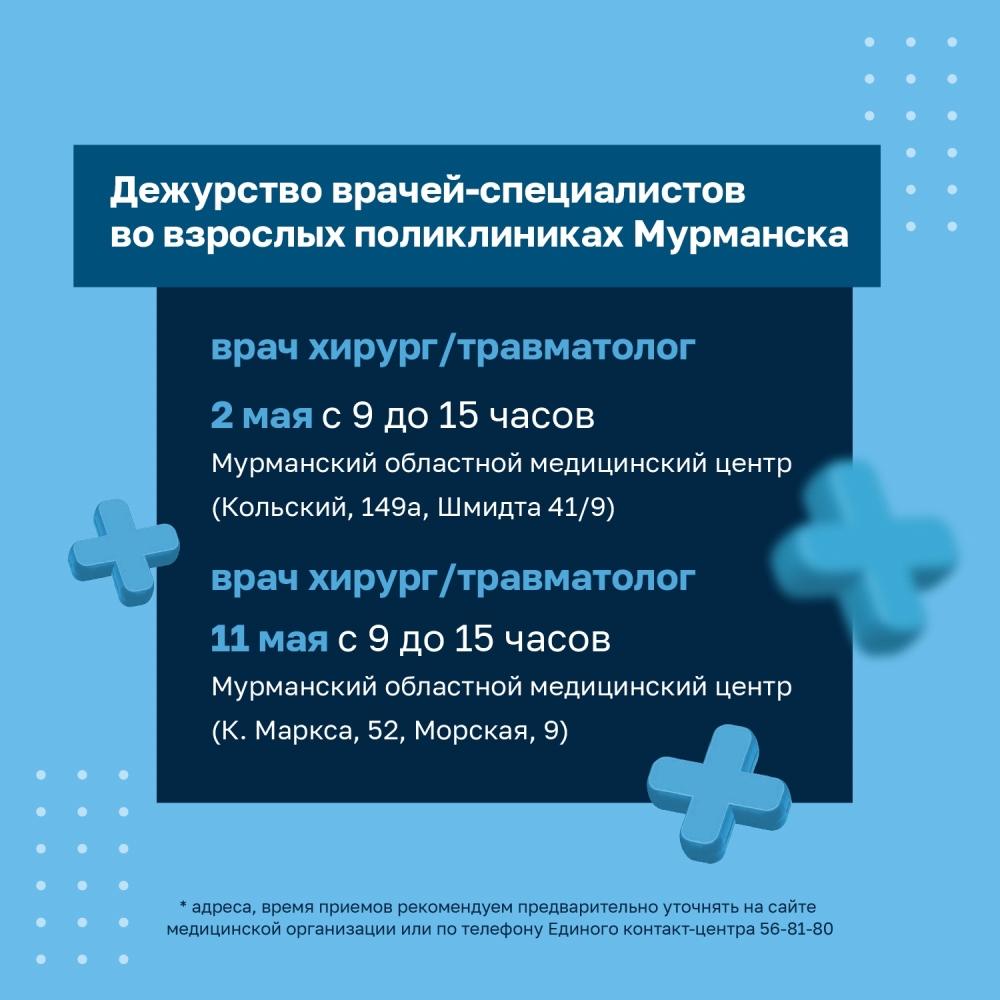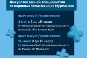 График работы медицинских учреждений в городе-герое Мурманске в период майских праздников.